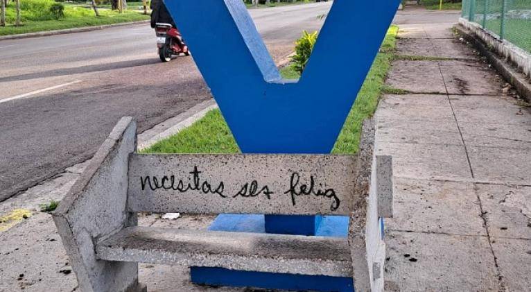 Lo cierto es que ahí está, en el respaldo de un banco de la parada, indicándole a todo aquel que pasa que alguien estaba seriamente interesado en la felicidad de otro alguien.