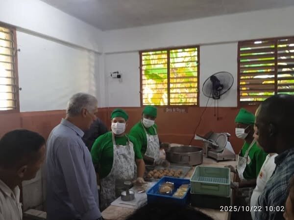 En la Villa Blanca, el jefe de Estado visitó también el Centro de elaboración, donde funciona la Cooperada Mipyme REMpeZ, S.R.L. & Comercio y Gastronomía, una mipyme surgida en 2021 y redimensionada (en su asociación de cooperada) en 2025. Allí conversó con el colectivo laboral y se interesó por las principales líneas de producción.