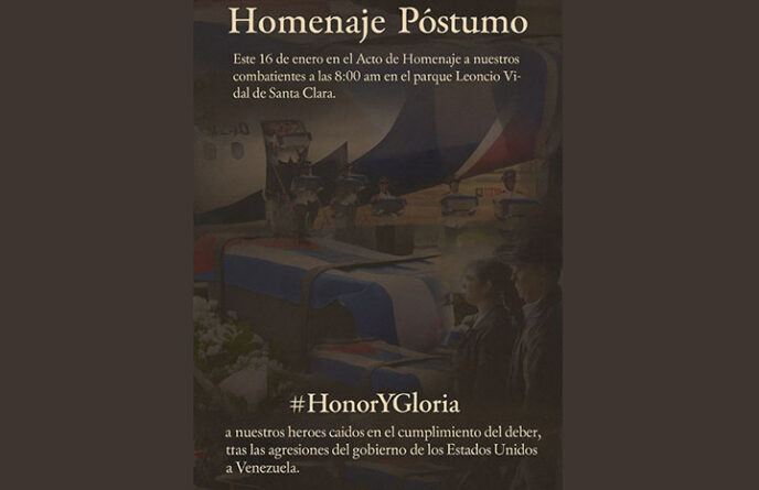 En Villa Clara el homenaje se produce luego del solemne recibimiento y tributo de Estado que se realizó este jueves 15 de enero en La Habana, donde el pueblo, junto a la máxima dirección del país, despidió a los caídos, quienes fueron víctimas del pasado 3 de enero, durante un ataque perpetrado por el gobierno de Estados Unidos contra la hermana República Bolivariana de Venezuela.