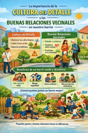 El barrio es más que un conjunto de calles y casas; es el espacio donde convivimos, crecemos y compartimos experiencias. Para que un vecindario sea seguro, agradable y armonioso, es fundamental fomentar una buena cultura del detalle y cultivar buenas relaciones vecinales